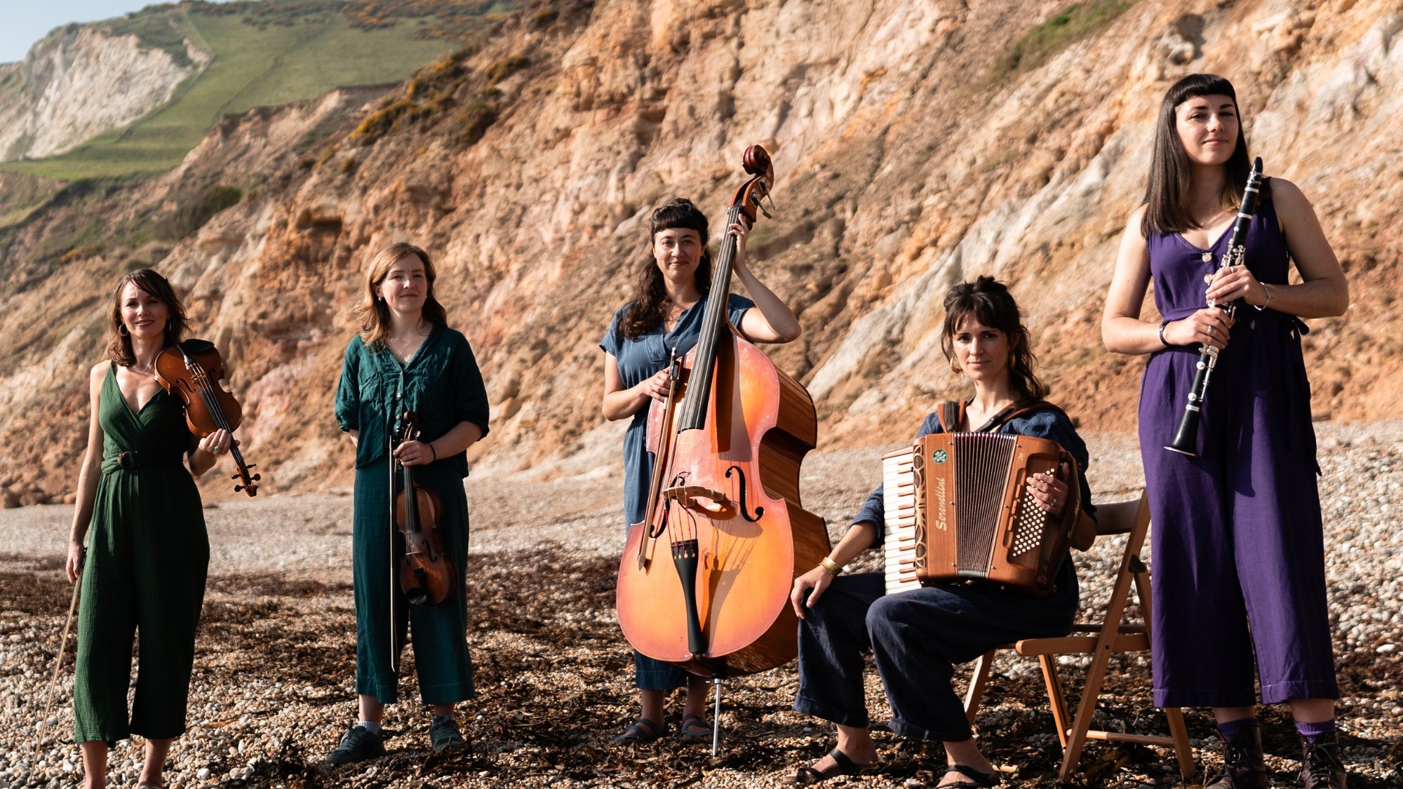 Hedera is Lulu Austin (violin), Maisie Brett (violin, viola), Tamsin Elliott (accordion, harp), Beth Roberts (double bass, violin) and Isis Wolf-Light (clarinets). They perform original and traditional pieces inspired by music from England, Scotland, France, Bali, Georgia, Bulgaria, Ethiopia and beyond, translated through a prism of experimental minimalism and contemporary classical influences.