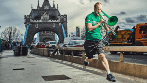 Following a bowel cancer diagnosis in 2022, Nathaniel Dye MBE has done a lot of living for a dying man, including the recording of his solo album Matters of Life and Death and has been called an ‘inspiration’ more times than he can count. Best known for running the 2024 London Marathon whilst playing the trombone, he has raised over £50,000 for charity along the way.